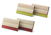 | 薄くて幅の広いカードタイプのヘラ。サイドウィンドウ、水切りゴム部分の施工に最適です。 | フィルム施工に古くから使われているスタンダードタイプのスキージです。 | 持ち手部分が木製で、6mmと9mmの厚みがあります。 |